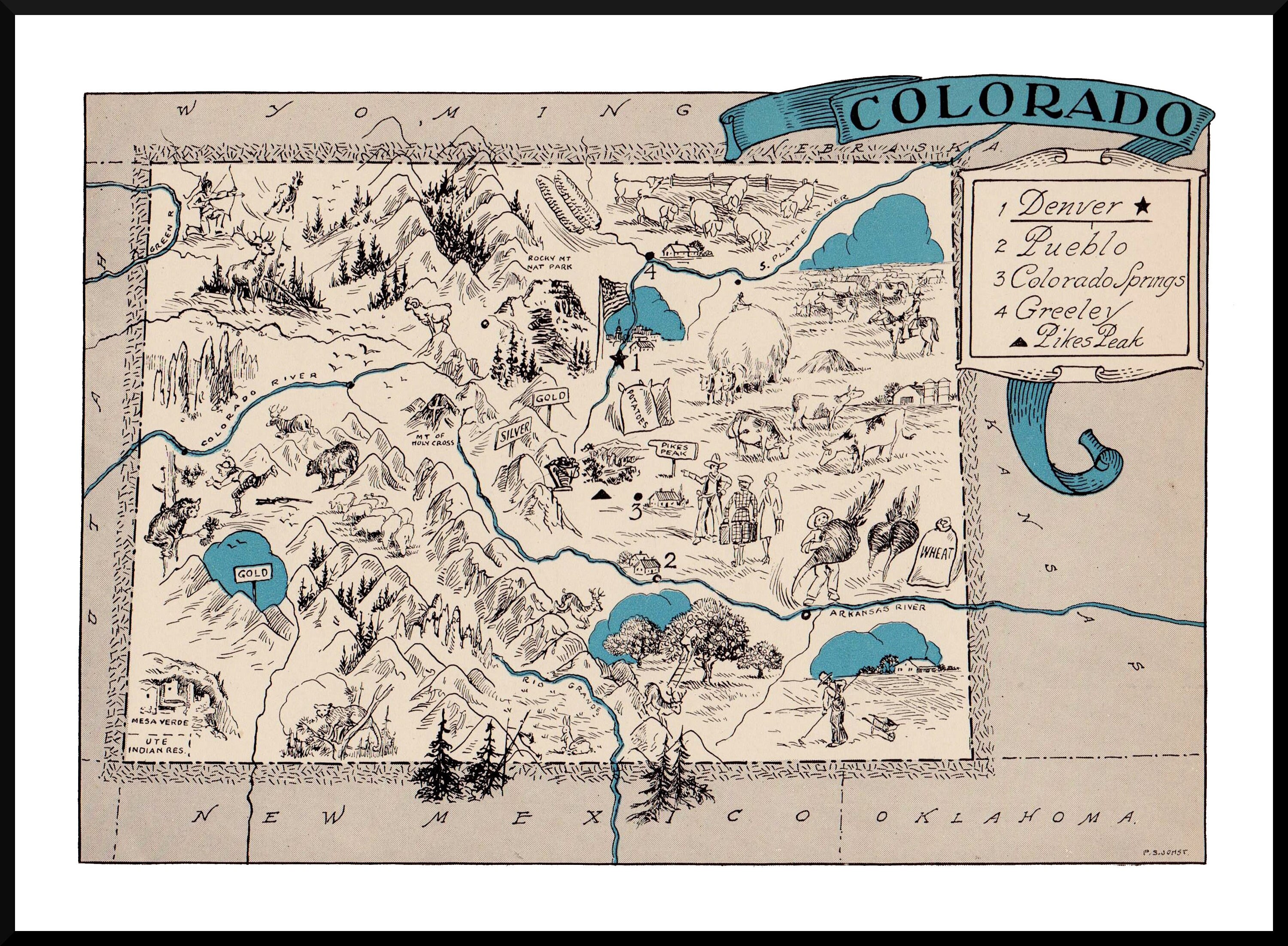 1930 S Colorado State Map Print Picture Map Of Colorado Etsy