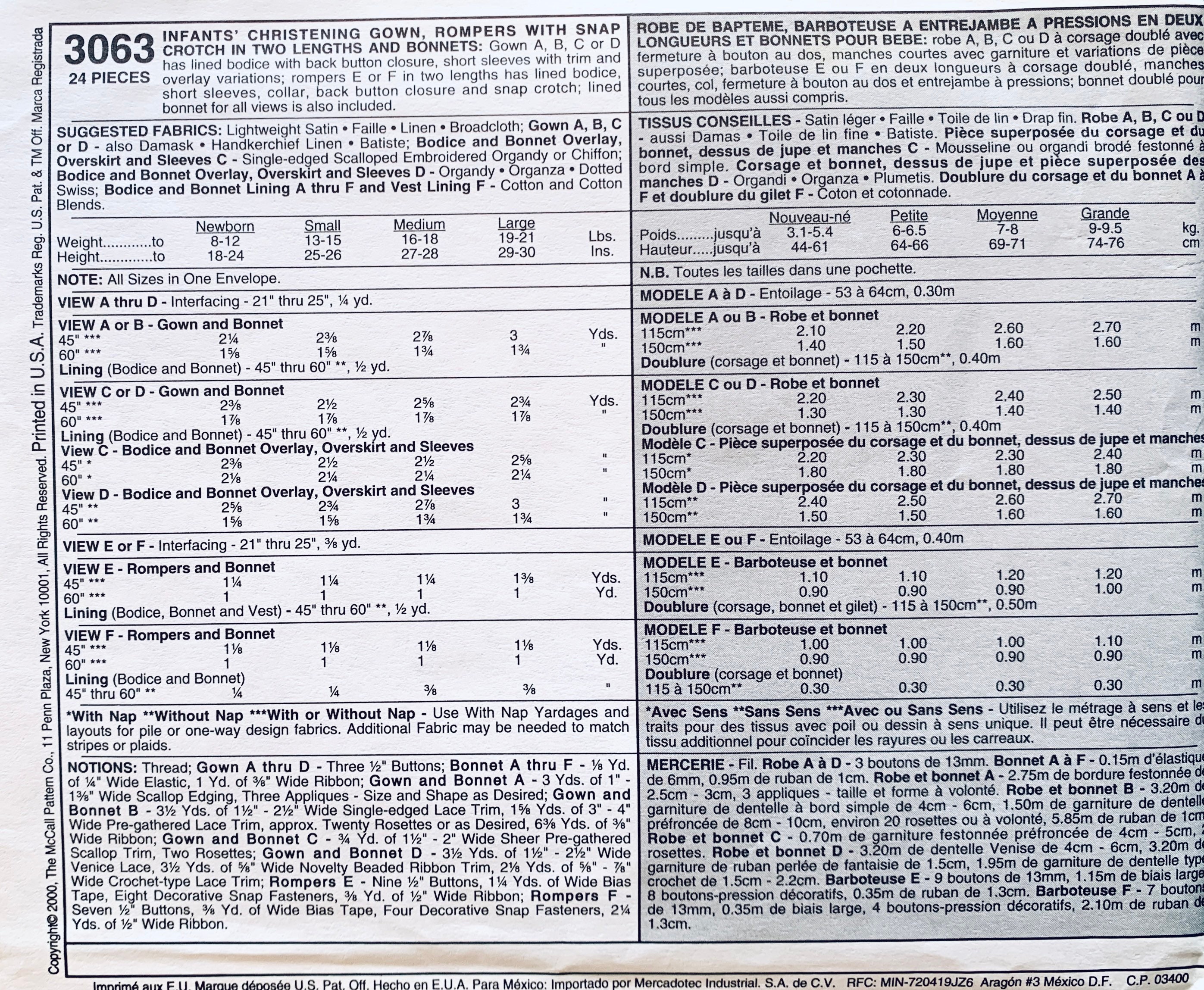 Mccall S 5195 Christening Coat Detachable Cape Gown Slip Bonnet Blanket Size 15 20lbs Used Sewing Pattern